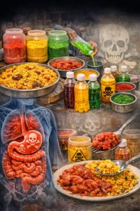 Dans les rues, les marchés et les coins de restauration rapide, les aliments colorés attirent immédiatement l’œil. Jus de bissap...